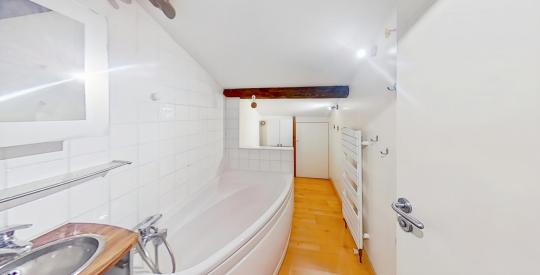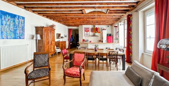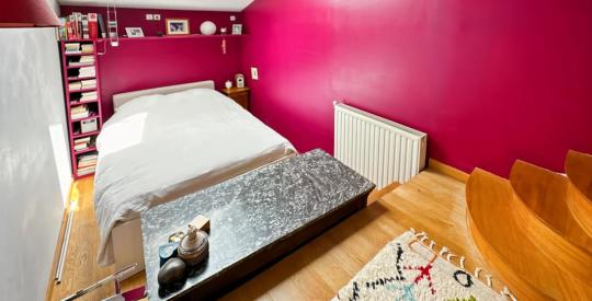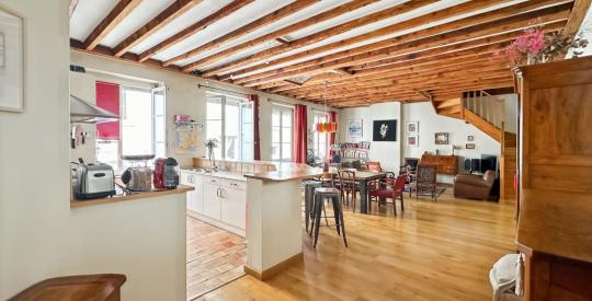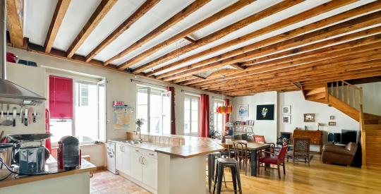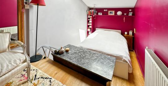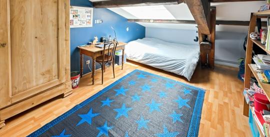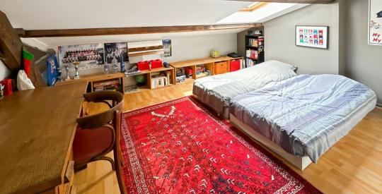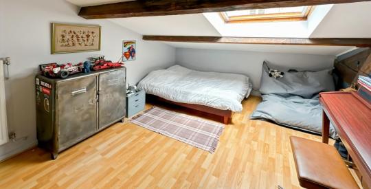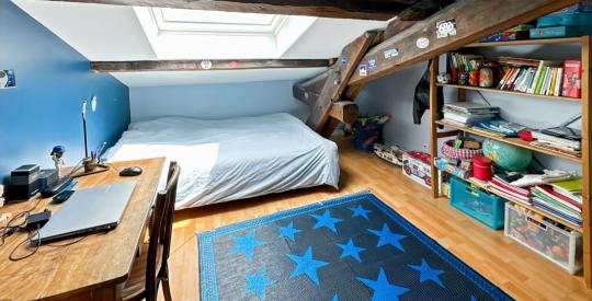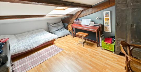 à l'étage des combles aménagées sous pente qui comprennent 4 chambres (18.23m², 15.45m², 14m², 13.15m² au sol) dont une grande chambre parentale, éclairées par velux, 1 salle de bain et un deuxième wc. Chauffage individuel au gaz, double vitrage, 2 caves dont une grande voûtée avec porte blindée (pour sécuriser les vélos), un cagibi sur le palier, vous serez charmé par son calme absolu et sa luminosité ce bien est proposé à 650 000 EUR. Contactez nous pour plus d'informations. visite virtuelle.