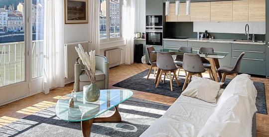 Situé sur le très prisé Quai Saint-Vincent, cet appartement de 84 m², entièrement rénové avec des matériaux haut de gamme, offre un cadre de vie rare et privilégié. Traversant Nord-Sud, il bénéficie d'une luminosité exceptionnelle et d'un panorama unique sur la Saône, sans aucun vis-à-vis.