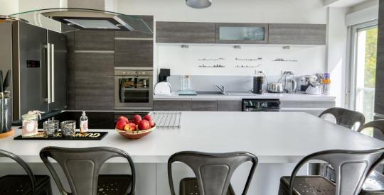 Dès l'entrée, l'œil est attiré par la pièce de vie de 45 m², lumineuse et généreuse, où la cuisine ouverte s'intègre harmonieusement à l'espace de réception. Conçu par un architecte, l'appartement révèle une configuration idéale, offrant une circulation fluide et deux espaces nuits bien distincts.