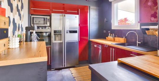 Chauffage individuel électrique, menuiseries double vitrage PVC avec volets roulants électriques, VMC simple flux, fibre optique, cuisine équipée sur mesure, garage double.
