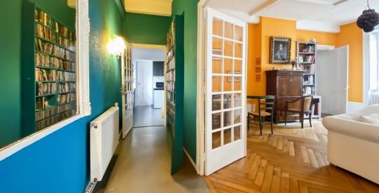 Au troisième étage sur entresol d'un immeuble historique de caractère, cet appartement traversant de 121 m2 se distingue par son emplacement remarquable et son calme absolu sur cour intérieure.
