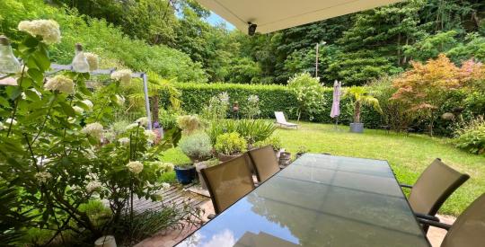 Parfaitement agencé, il se compose d'un hall d'entrée ,d'une cuisine équipée ouverte sur une vaste pièce de vie donnant sur une terrasse accueillante de 30 m² ouverte sur un jardin privatif de 400m² parfaitement entretenu, jardin piscinable!