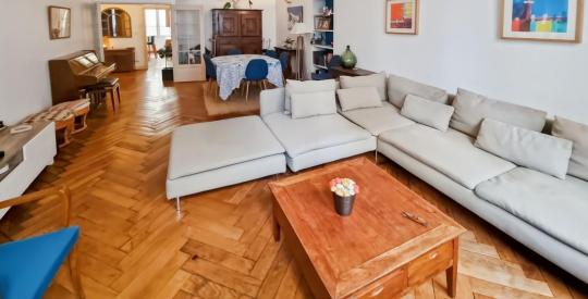 Très calme et doté de fenêtres en double vitrage, cet appartement séduira les amateurs d'authenticité grâce à ses parquets, cheminées, moulures et à l'atmosphère singulière qui s'en dégage. Une grande cave vient compléter ce bien.