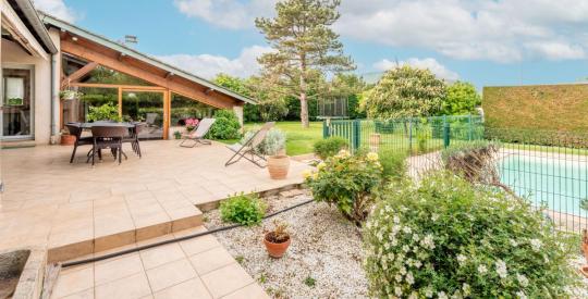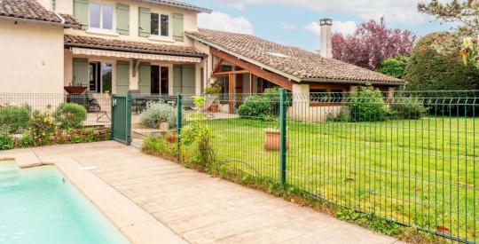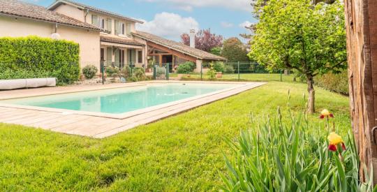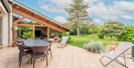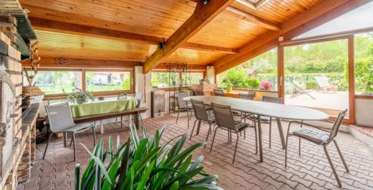 Cette propriété séduit par ses beaux volumes, sa luminosité et des matériaux de qualité. Vous profiterez d'une grande véranda lumineuse, d'un bureau, d'une dépendance pouvant accueillir des invités ou servir d'activité professionnelle, ainsi que d'une cuisine d'été attenante.