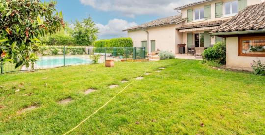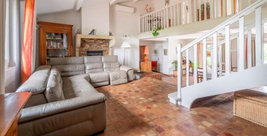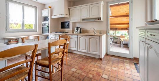 Belle villa familiale à vendre, d'une surface de 243 m², offrant 5 chambres, 1 bureau et un vaste séjour, idéale pour une grande famille. Une cuisine équipée dotée d'un cellier ouvre sur la véranda et la terrasse ensoleillée.