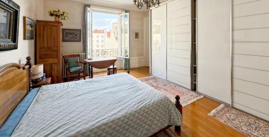 Implanté en étage élevé, cet appartement traversant de 132,40 m² Carrez séduit par ses volumes généreux, sa hauteur sous plafond de 3 m et sa belle luminosité. Le double séjour de 36,50 m², orienté sur le Cours Vitton, s'ouvre sur un agréable balcon de 5,95 m², idéal pour profiter de l'extérieur. Les pièces de vie et la chambre parentale sont climatisées.