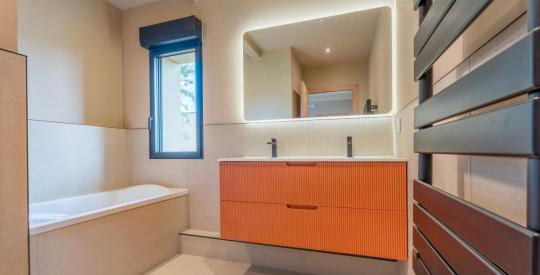 De plain-pied vous découvrirez une suite parentale ouvrant sur la terrasse composée d'une chambre, salle d'eau à l'italienne et dressing ainsi qu'une autre chambre avec sa salle d'eau. Une buanderie et un WC invités complètent le rez-de-chaussée