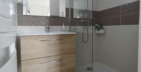 À l'étage, l'espace nuit propose trois belles chambres, une pièce d'eau avec douche et baignoire et un WC séparé.