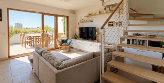 Ce duplex conjugue avec élégance l'architecture contemporaine, les matériaux nobles et un emplacement privilégié. Sa terrasse panoramique, baignée de soleil du matin au soir, constitue un véritable lieu de vie supplémentaire où intérieur et extérieur dialoguent en parfaite harmonie. C'est une adresse rare, pensée pour ceux qui recherchent un bien d'exception au caractère unique.
