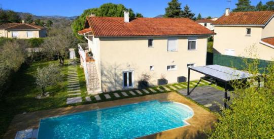 Située à Grezieu limite Craponne, au fond d'une impasse et à proximité des commerces ainsi que des transports en commun, dans un quartier calme et recherché, découvrez cette villa d'environ 170m2 de surface totale pour environ 130m2 de surface habitable sur deux niveaux de 4 chambres au total (possibilité de créer deux appartements) avec piscine, un pool-house, le tout sur une parcelle de 750m² entièrement close et sans vis-à-vis.