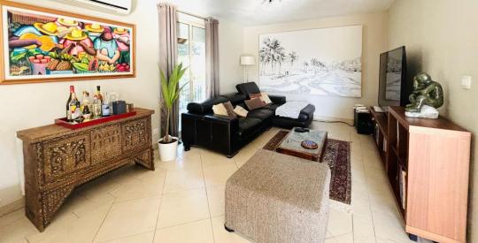 Une entrée donnant sur une grande pièce de vie lumineuse avec accès direct au balcon de 26m2, une cuisine ouverte entièrement équipée