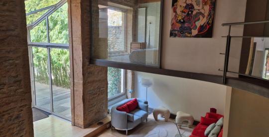 Venez découvrir le charme de cet appartement de canut associé à une petite maison plus traditionnelle, le tout, formant une seule unité d'habitation de 148,38 m2 utiles/ 127,38 m2 Carrez + terrasse de 24 m2 + jardin de 160 m2 + abris de jardin.