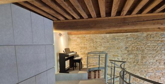 Poutres et pierres apparentes, parquet en bambou, verrière, bons diagnostics : DPE D, pas d'anomalies électriques. Toiture et façade refaites pour la maison.