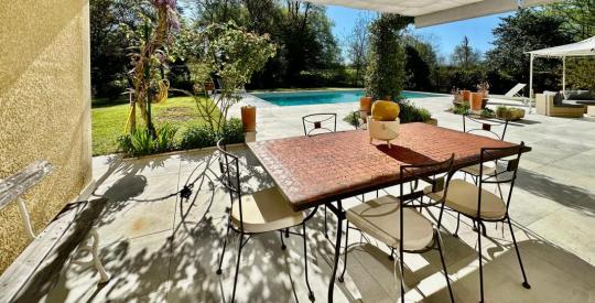 L'un des joyaux de ce jardin est sans nul doute l'espace de baignade. La dalle de la terrasse de la piscine vient d'être intégralement refaite à neuf, offrant un cadre minéral, moderne et élégant pour vos après-midis d'été. Le Poolhouse adjacent devient le centre de gravité de vos réceptions, un lieu de convivialité par excellence pour les déjeuners à l'ombre ou les soirées entre amis.