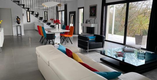 Nous vous proposons de venir découvrir cette réalisation unique, sobre et élégante, très contemporaine avec des volumes. Sa situation au calme, en première couronne ouest de Lyon propose une position dominante au sommet d'une colline avec une vue sur un océan végétal sans qu'aucun bâti ne vienne troubler cette perspective offrant sérénité et calme absolu. Cette maison d'architecte de 2014 a été entièrement pensée pour la mise en valeur de son environnement sublimant en retour les prouesses architecturales de celle ci. Les prestations d'une extrême qualité (cuisine Bulthaup, volets électriques, climatisation, pac pour piscine, 3 salles de bains, et 3 wc, Hauteur sous Plafond de 2m80...) sont à la hauteur de cette communion parfaite...Piscine, Pool House de 11 m², Garage de 23m² et stationnments en plus sur le terrain.