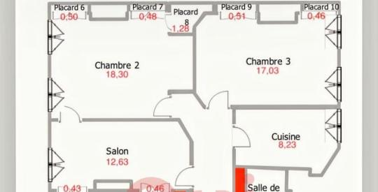 Un croquis de l'appartement précisant les surfaces, les murs porteurs et les portes palières est ajouté parmi les photos de l'annonce.