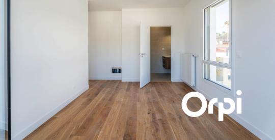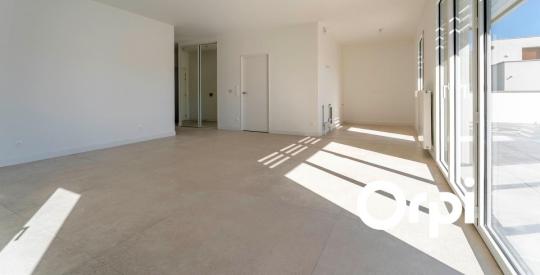Le vaste séjour, baigné de lumière grâce à ses larges baies vitrées, s'ouvre sur une immense terrasse de 40m² et sa jardinières de 17m² qui domine le paysage urbain.