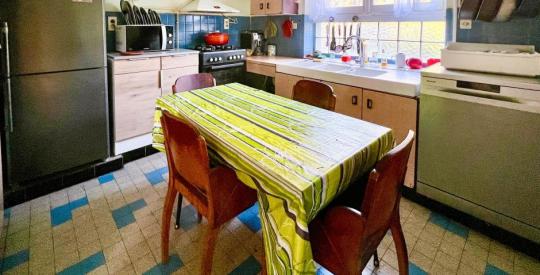 Elle se compose au rez-de-chaussée d'une entrée, de deux chambres, un WC, un sellier, une chaufferie, un grand garage et un atelier. À l'étage, vous trouverez un grand salon-séjour traversant et lumineux avec cheminée, donnant sur un balcon exposé à l'ouest, une cuisine indépendante, trois chambres, une salle d'eau et un WC séparé.