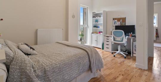À l'étage : quatre belles chambres, une grande salle de bain, un WC indépendant, ainsi qu'un espace bureau ou salle de jeux en mezzanine.