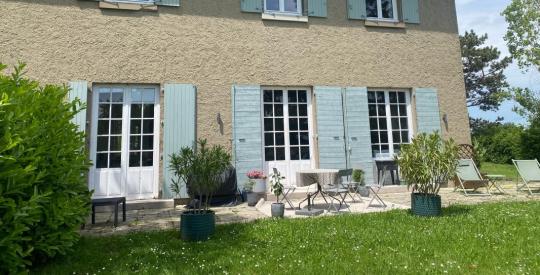 À deux pas du Golf, nichée sur un magnifique terrain arboré de plus de 2 500 m², cette maison familiale d'environ 200 m² offre une vue imprenable sur le village. Construite en 1964, elle a fait l'objet d'une rénovation complète en 2020, orchestrée par un architecte, alliant charme de l'ancien et confort contemporain.
