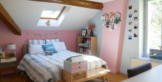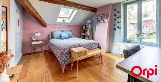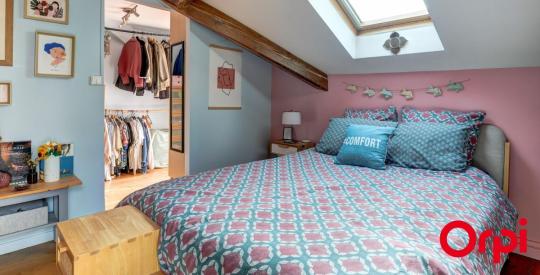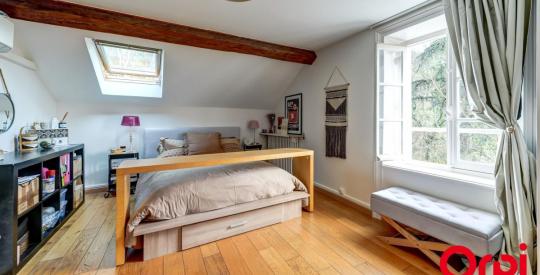 Le dernier étage, partiellement mansardé, offre deux chambres supplémentaires, deux dressings et une salle d'eau avec WC. Cet espace peut aisément accueillir une suite parentale indépendante, un bureau ou un espace dédié aux enfants, selon les besoins.