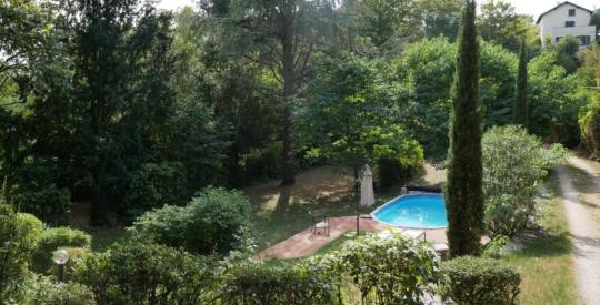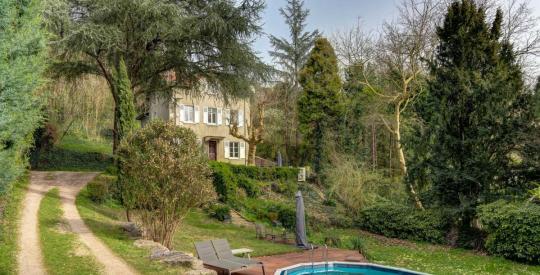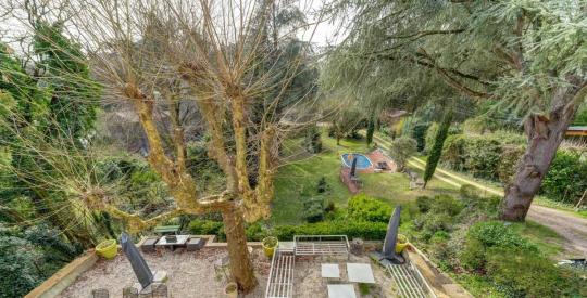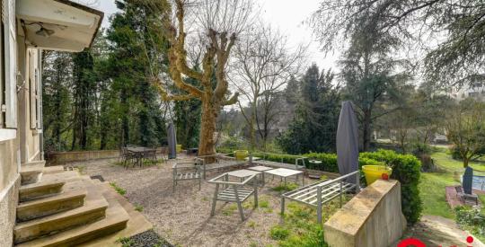 À l'extérieur, le parc paysager de 3 000 m² constitue un véritable havre de paix. La piscine, parfaitement intégrée à l'environnement, s'entoure d'une terrasse ensoleillée propice à la détente. De majestueux arbres, des massifs fleuris et plusieurs zones ombragées composent un cadre naturel rare, à seulement quelques minutes du centre de Lyon.