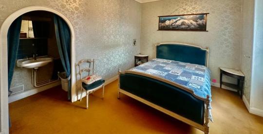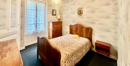 L'étage distribue trois grandes chambres, dont une avec point d'eau, tandis que la salle de bains et les WC sont situés sur le demi-palier.