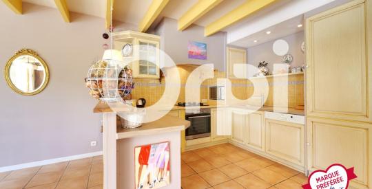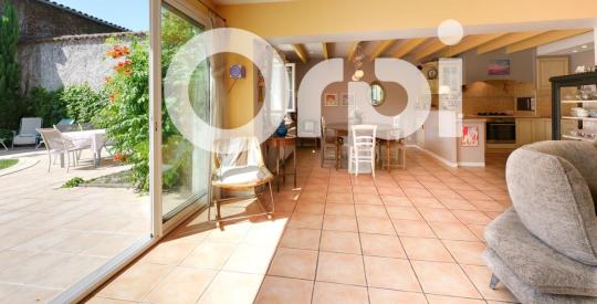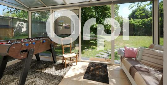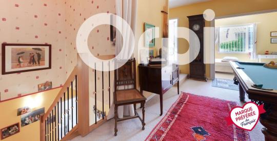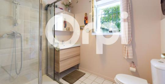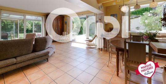 Idéalement placée dans le jardin, la maison d'environ 161 m2 habitable (environ 210 m2 au sol) organise sur deux niveaux ses volumes généreux. Au rez-de-chaussée se trouvent une entrée, une belle pièce de vie avec cuisine ouverte, arrière-cuisine / buanderie, cellier, une salle d'eau avec toilettes. À l'étage, un grand dégagement pouvant faire office de bureau ou salle de jeux, 2 chambres, une suite parentale et toilettes. Dans les combles aménagés, mansardés une 4ème chambre de joli volume qui ravira des enfants ou adolescents (plus de 40 m2 au sol).