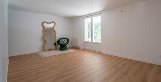 - Séjour traversant lumineux avec salle à manger et espace cuisine à aménager selon vos envies