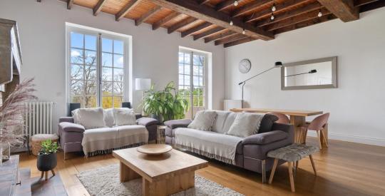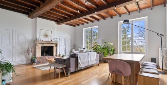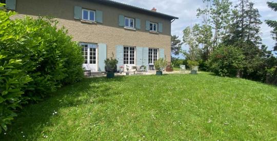 LA TOUR-DE-SALVAGNY : À deux pas du Golf, nichée sur un magnifique terrain arboré de plus de 2 500 m², cette maison familiale d'environ 200 m² offre une vue imprenable sur le village. Construite en 1964, elle a fait l'objet d'une rénovation complète en 2020, orchestrée par un architecte, alliant charme de l'ancien et confort contemporain.