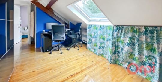 À l'étage vous disposerez de trois chambres mansardées, un bureau, et un second WC.