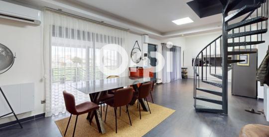une pièce de vie d'environ 60 m² avec cuisine aménagée et équipée, ouverte sur le salon / séjour,
