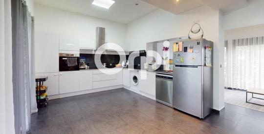 d'un séjour lumineux avec cuisine aménagée et équipée, ouverte sur le salon,