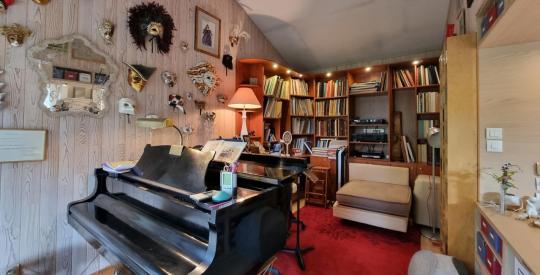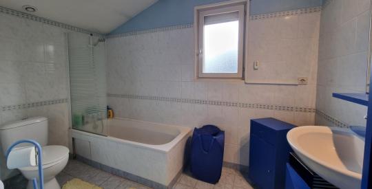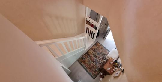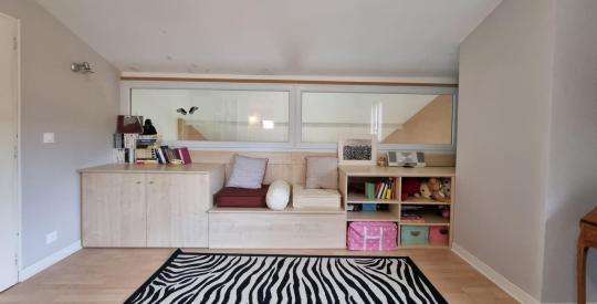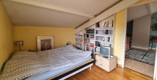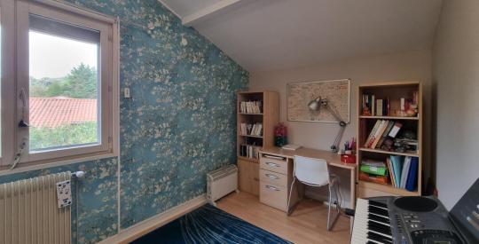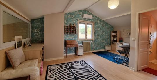 À l'étage, vous trouverez une troisième chambre, une salle de bains avec WC, ainsi qu'un bel espace en mezzanine, idéal pour une chambre supplémentaire, un bureau ou une salle de jeux selon vos envies.