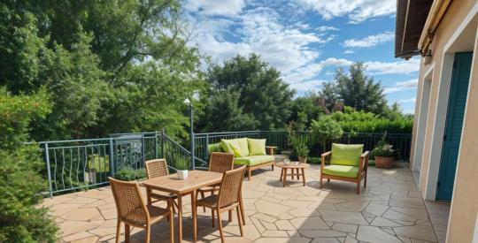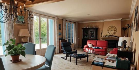 Vous serez immédiatement séduit par le vaste salon/séjour lumineux, agrémenté d'une cheminée et ouvert sur une grande terrasse plein sud de 55 m² : l'endroit idéal pour profiter des beaux jours en toute sérénité.