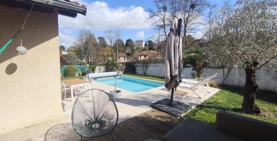 À l'extérieur, vous profiterez d'une parcelle d'environ 1 000 m², agrémentée d'une allée pavée avec portail motorisé. Une grande terrasse prolonge harmonieusement les espaces de vie et accueille une piscine sécurisée par volet roulant, idéale pour les moments de détente en toute tranquillité.