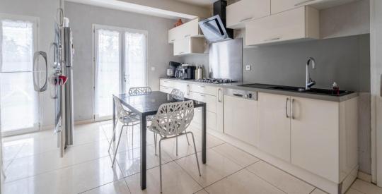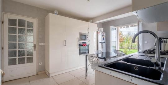 Le vaste séjour traversant de 51 m², extrêmement lumineux grâce à de larges baies vitrées, accueille un salon - salle à manger s'ouvrant directement sur le jardin. La cuisine indépendante, entièrement équipée, bénéficie d'une buanderie attenante, idéale pour le quotidien. Deux salles de bain / douche et deux WC complètent l'ensemble.