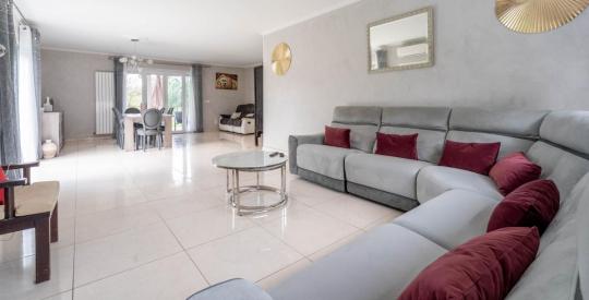 Édifiée en 2004, cette villa d'architecte séduit dès l'entrée par ses volumes généreux et son agencement pensé pour une vie de famille harmonieuse.