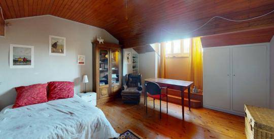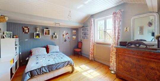 Au 1er étage: de trois chambres, d'une salle de bains, d'un WC séparé et de nombreux greniers.