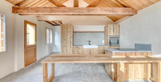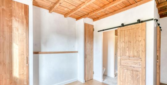 Entièrement rénovée en 2026, la maison a été reprise en totalité : sols, murs, plafonds, réseaux et équipements sont neufs. Les poutres en bois ont été conservées et mises en valeur. Les matériaux choisis — pierre et bois massifs — apportent solidité et caractère.