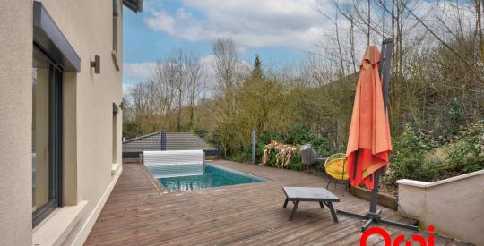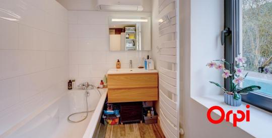 Dans un espace de vie lumineux de plus de 70 m², vous disposerez d'une cuisine meublée et équipée ouverte sur un vaste séjour doté d'un plancher bois chaleureux et d'un poêle à granulés.