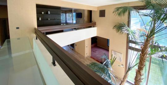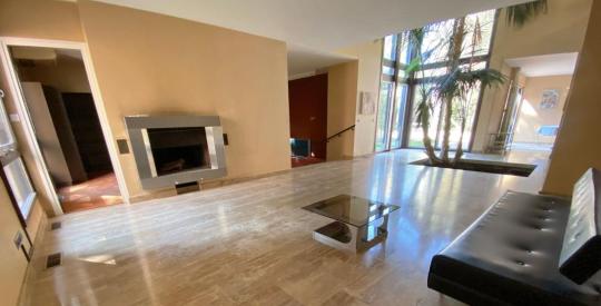 un hall d'entrée majestueux, baigné de lumière, s'ouvre sur un patio intérieur où s'élève un palmier , véritable cœur végétal de la maison.