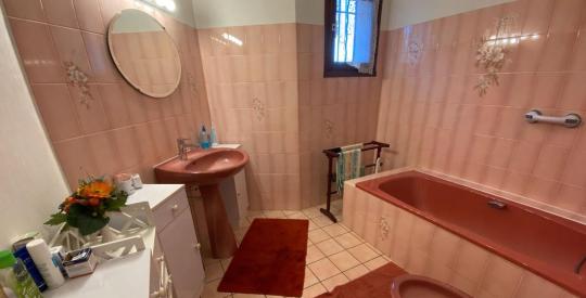 Le sous-sol de 112 m² constitue un véritable atout : partiellement hors sol, lumineux grâce à ses ouvertures, et équipé d'une arrivée d'eau, il se prête parfaitement à un aménagement en espace de chambres suplémentaires , ou bureau ou logement indépendant.
