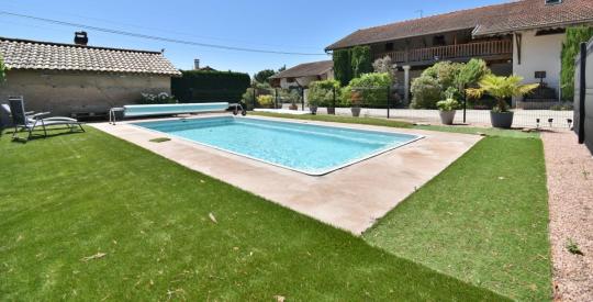 En exclusivité dans votre agence Orpi de Meximieux , on vous présente ce très beau corps de ferme entièrement rénové de plus de 230 m2 habitable sur sa parcelle de 1230 m2 environ avec sa dépendance de 95 m2 au sol , un car port 2 véhicules et une piscine de 8 par 4 et une cave enterrée .