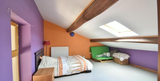 A l étage deux chambres , une salle d 'eau , un wc , et au dessus deux belles chambres mansardées .