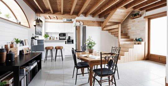 De la belle terrasse couverte vous accèderez au séjour avec une partie cuisine de 35 m2 , un salon de 26 m2 , une chambre , une salle d'eau , un wc , une buanderie .