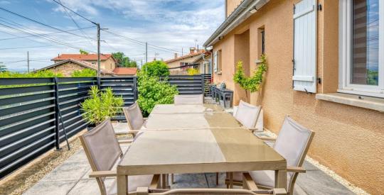 Cette maison contemporaine, d'une surface habitable de 124 m², conjugue confort moderne et cadre de vie paisible. Située dans un environnement préservé, à l'abri des regards, elle profite d'une proximité immédiate avec toutes les commodités offertes par ce village au charme authentique des Pierres Dorées : commerces, bus, gare SNCF