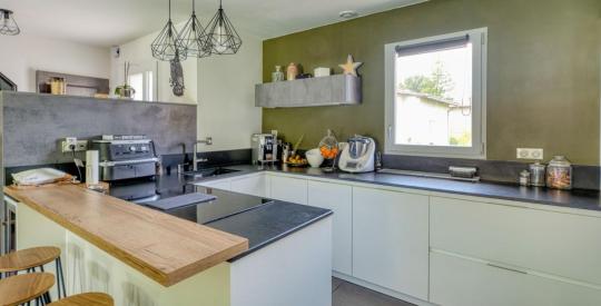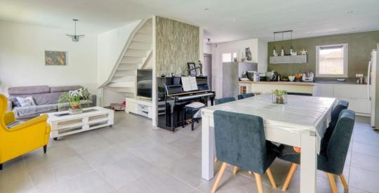 Dès l'entrée, vous serez séduit par l'agencement harmonieux du rez-de-chaussée, qui propose une vaste pièce traversante et lumineuse grâce à ses larges ouvertures sur l'extérieur. La cuisine très récente ( 2021) , entièrement équipée et ouverte, s'intègre avec élégance à cet espace convivial.