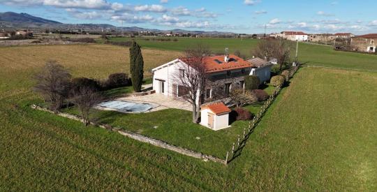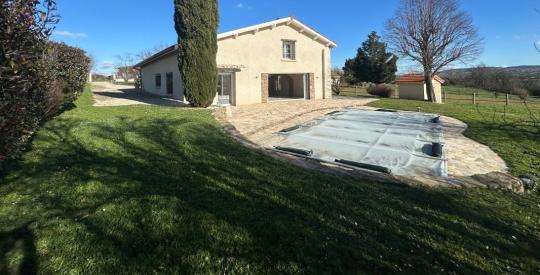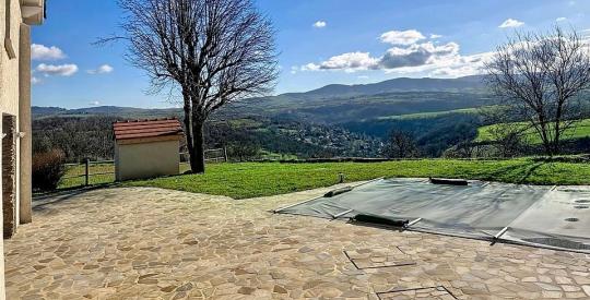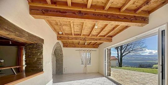 D'une surface habitable de 175 m² habitables (270 m² au sol) sur un terrain arboré d'environ 1 200 m², la maison bénéficie d'une triple exposition et d'une vue panoramique exceptionnelle sur le Mont Pilat, sans aucun vis-à-vis.