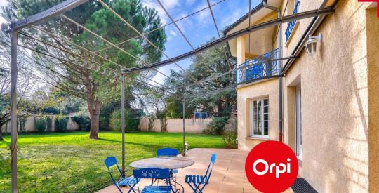 Exclusivité ORPI - Maison d'architecte d'une surface utile de 302 m² (163 m² habitables, 39 m² de garage double et 74 m² de sous-sol), située sur un terrain arboré de 1160 m² dans le secteur recherché des Haut de Saint-Bonnet-de-Mure.